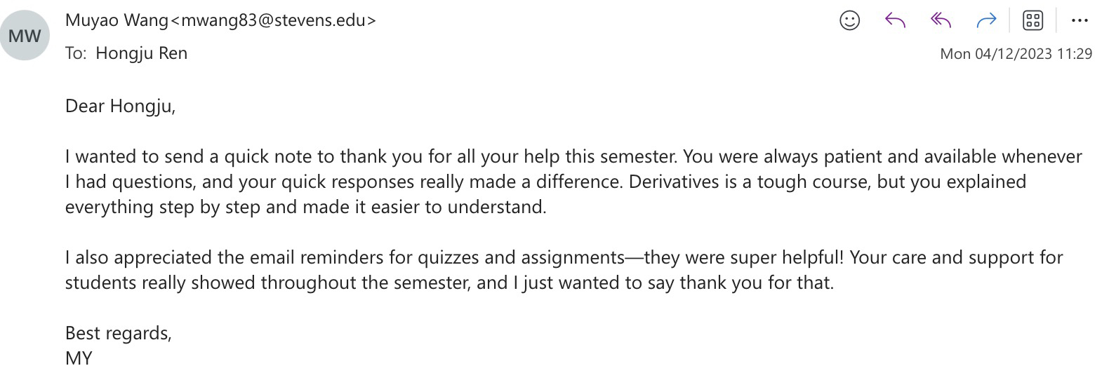 "My teacher always prepares the documents as well as materials needed for the class in advance so that we can know in advance what will be discussed in the next class. Secondly, the teachers are eager to help students with their questions and have a very high quality of teaching."